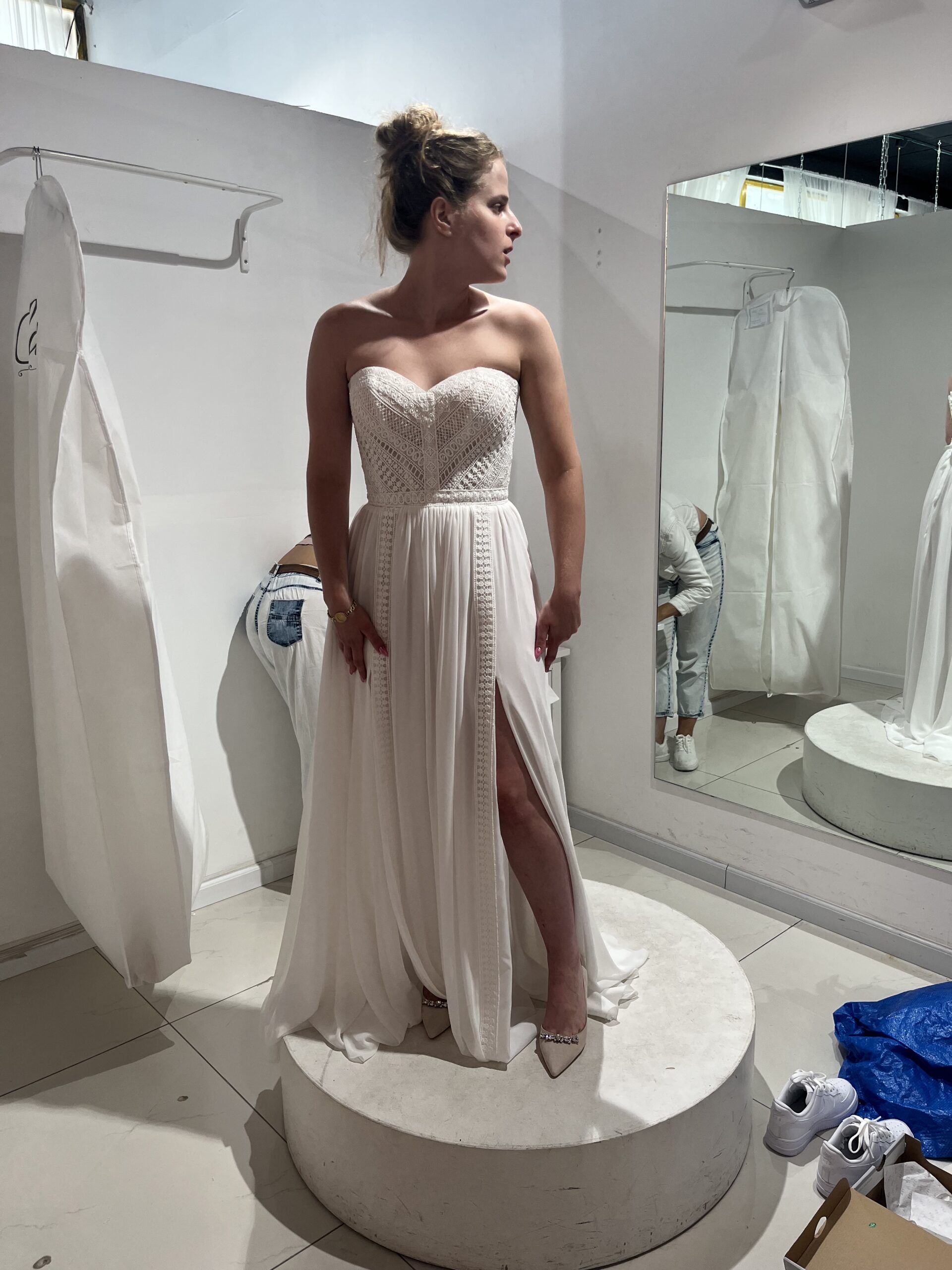 שמלה שנייה שמושלמת גם כראשונה, סטרפלס עם שסע, סגירת מחוך בגב ודיטייל של לב מקדימה