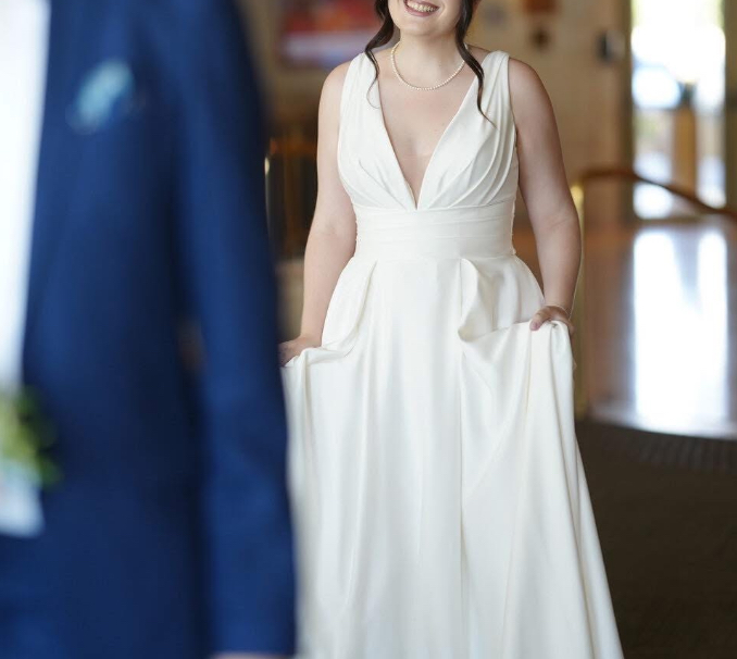 שמלת כלה קלאסית, אלגנטית, סאטן, מידה L, קאפ C/D,גובה 167+עקב