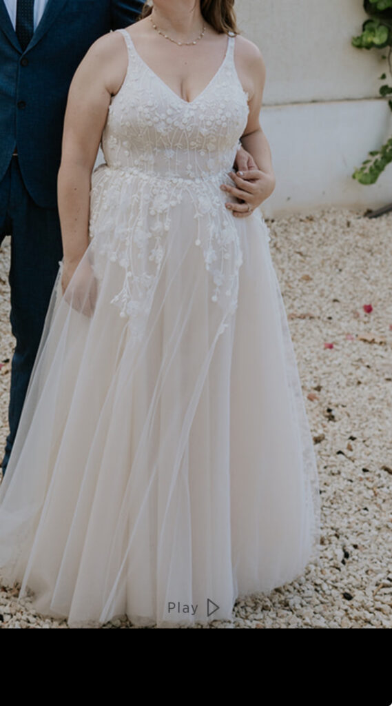 מוכרת שמלת כלה של קלייר דגם עלמה. השמלה בצבע לבן עם טון של ניוד. תתאים למישהי מאוד בהירה. פרחונית וקלה ממש. התחתנתי איתה בחום של 34 מעלות והיה לי איתה קל ונעים.