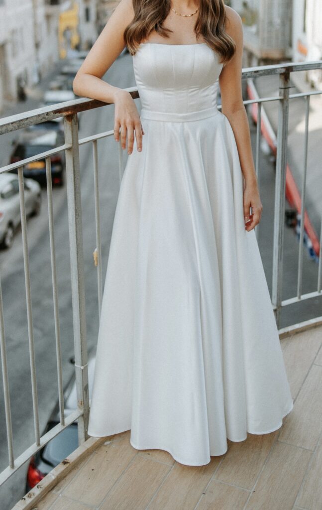 דגם בל של קלייר, שמלת מחוך קלאסית מבד סאטן.