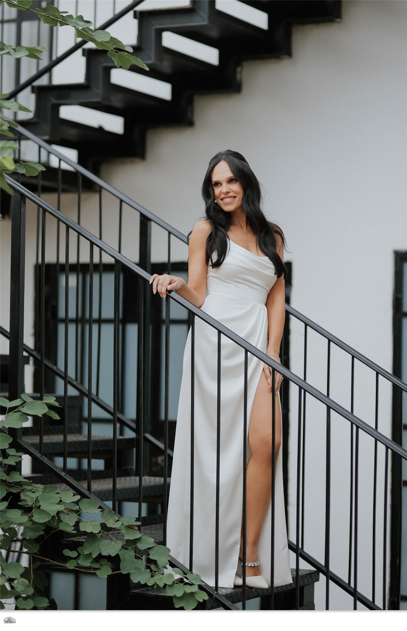 שמלת סאטן בגוון פנינה כתפיה אחת ושסע
