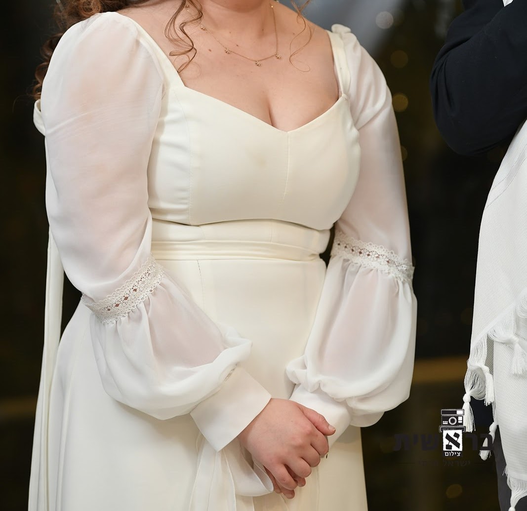 שמלת כלה קלילה ונוחה. הבד לא כבד בכלל ויש אפשרות להסיר את השרוולים בקלות או לחלופין לשים תיק תקים כדי שתוכלו לשחק עם זה.