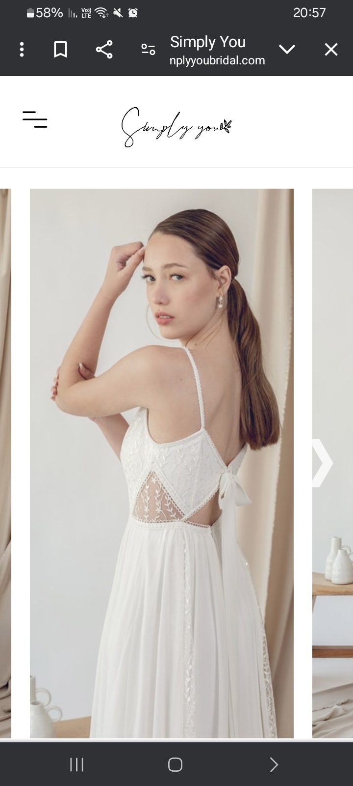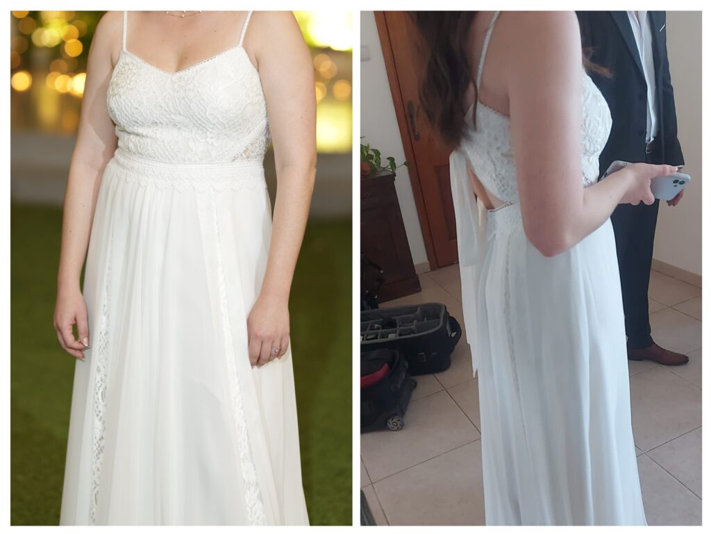שמלה נוחה ונעימה, בחלק העליון עם עיטורים וחרוזים בדוגמת פרחים, כתפיות דקות עם חרוזים עדינים. מגיעה עם חזייה מובנית שניתן לנתק בקלות.