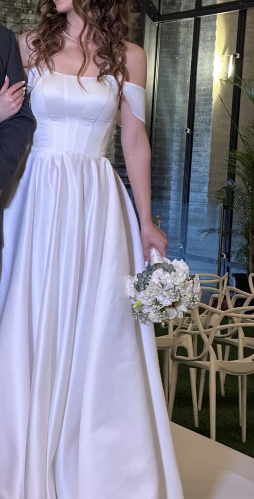 שמלה מהאגדות, עם מחוך צמוד ומחמיא ושמלה נפוחה במידה. ניתן להגדיל ולהקטין את המחוך. הייתי עם עקבים גבוהים אז גם מישהי שהגובה שלה הוא 1.70 תוכל להנות ממנה.