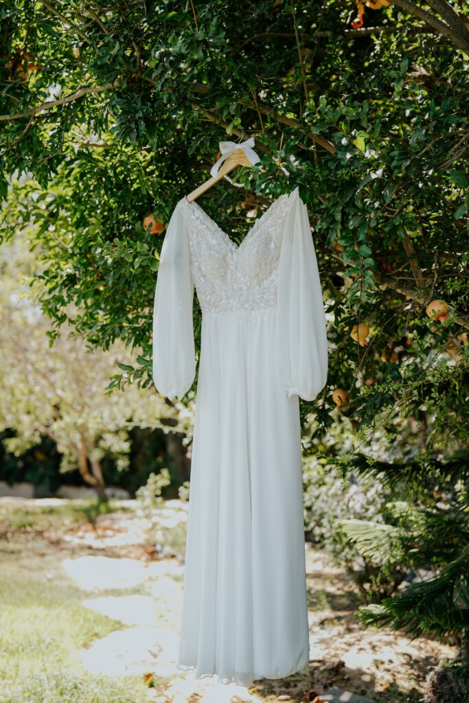 שמלה מבד שיפון, קלאסית ועדינה. צמודה במותנים ונשפכת.