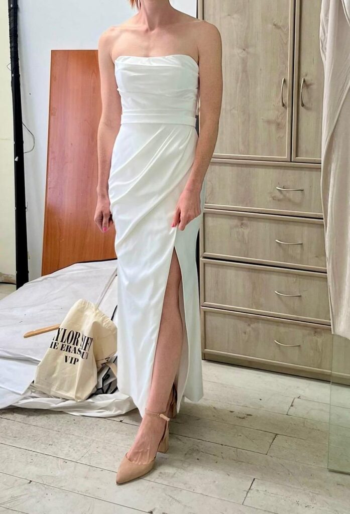 סטרפלס עם מחוך פנימי, עם שסע ושובל קטן מאחור