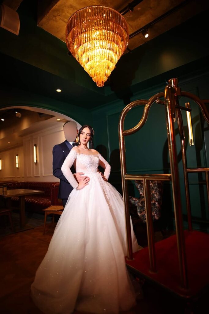 שמלת כלה של T&E מידה 38 עם מחוך מובנה וכפתורים בגב. מנצנצת ונסיכתית.