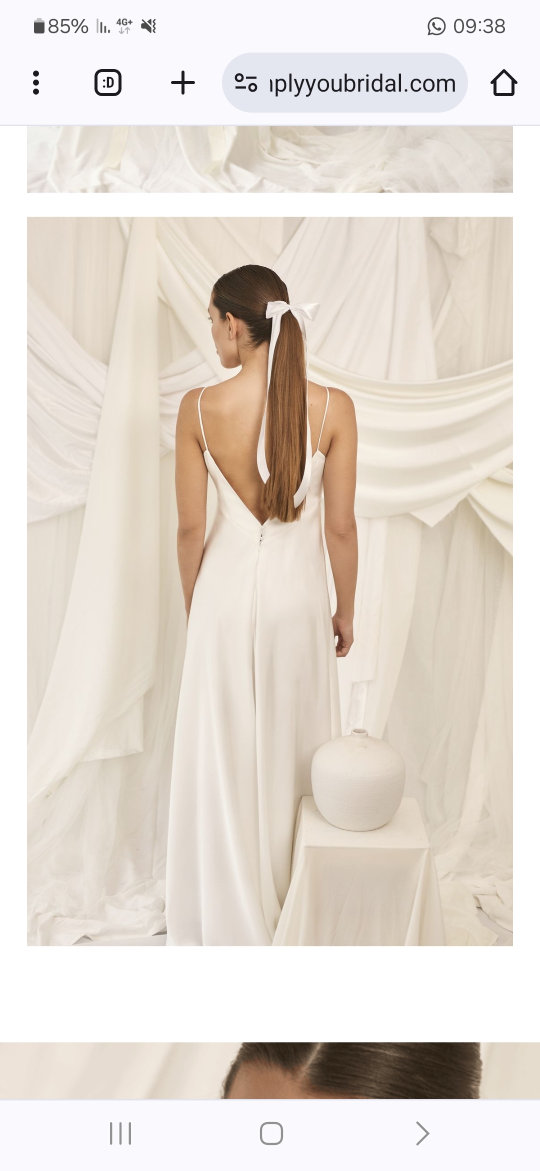 בד סאטן, עדינה ואלגנטית, עם גב פתוח ושסע.