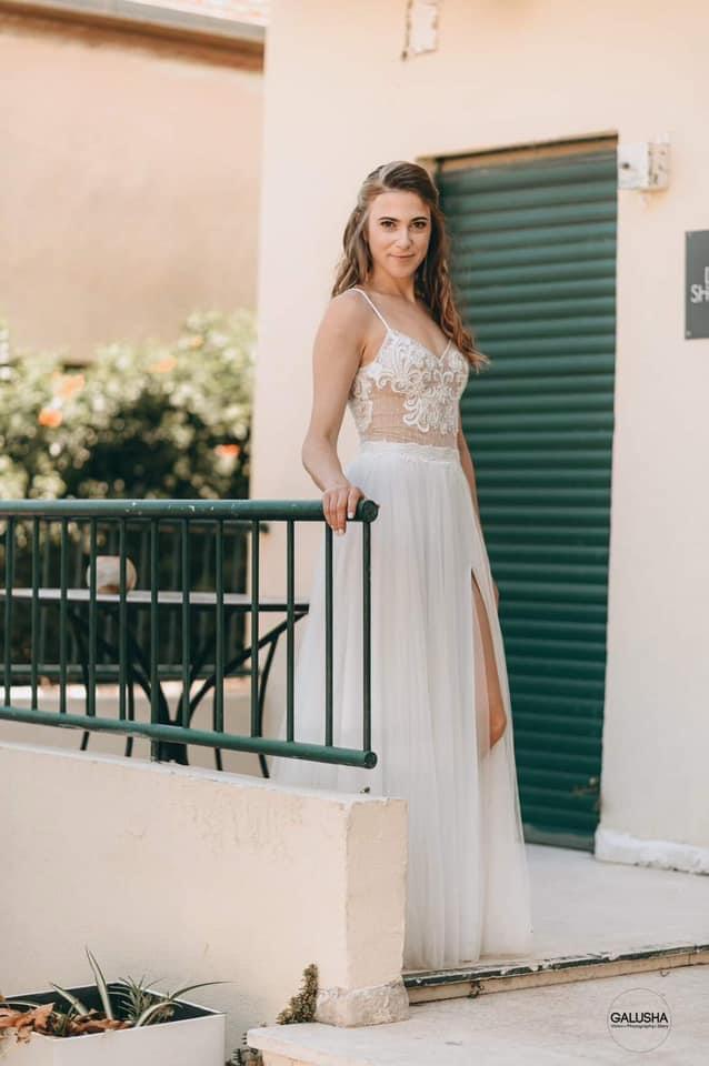 שמלת כלה נסיכותית מחשוף עמוק מנצנצת יש אפשרות גם בלי מנפח